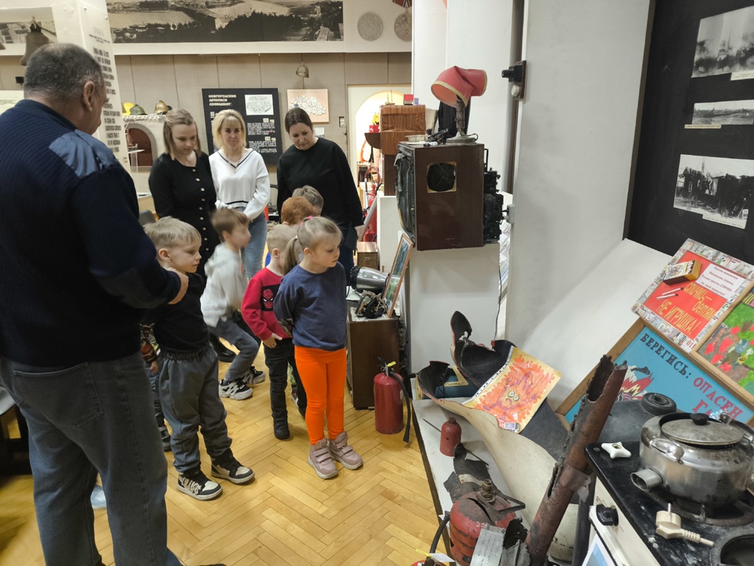 Ребята с интересом рассматривали экспонаты музея, привезенные с мест пожаров: утюги, плойки, кипятильники, телевизоры.
