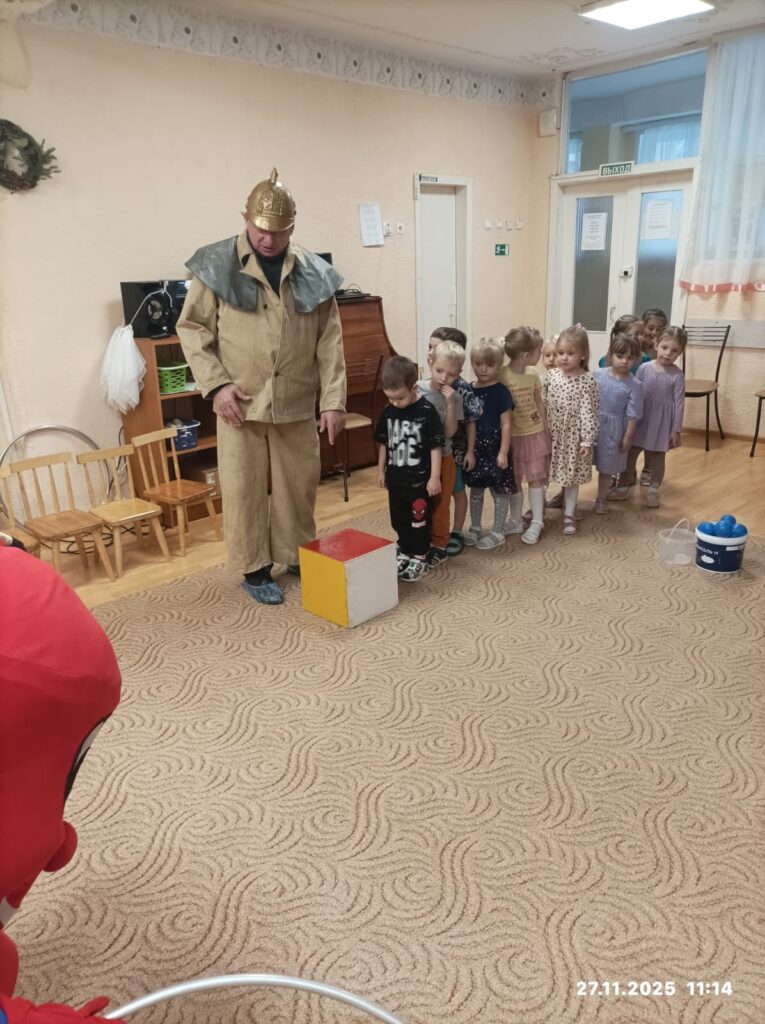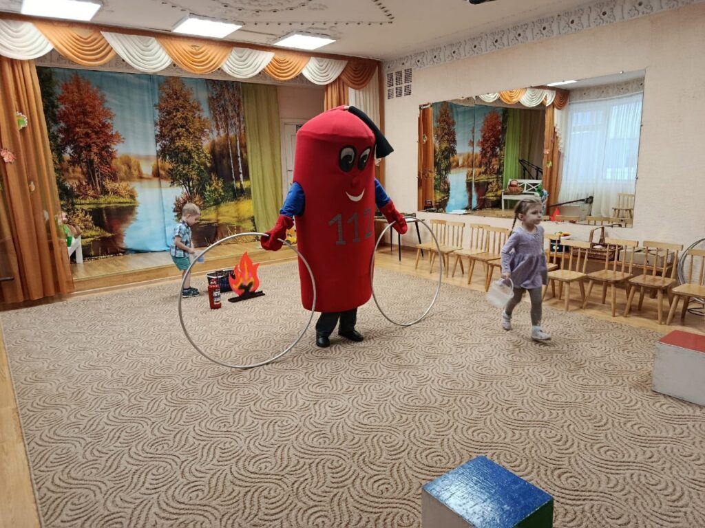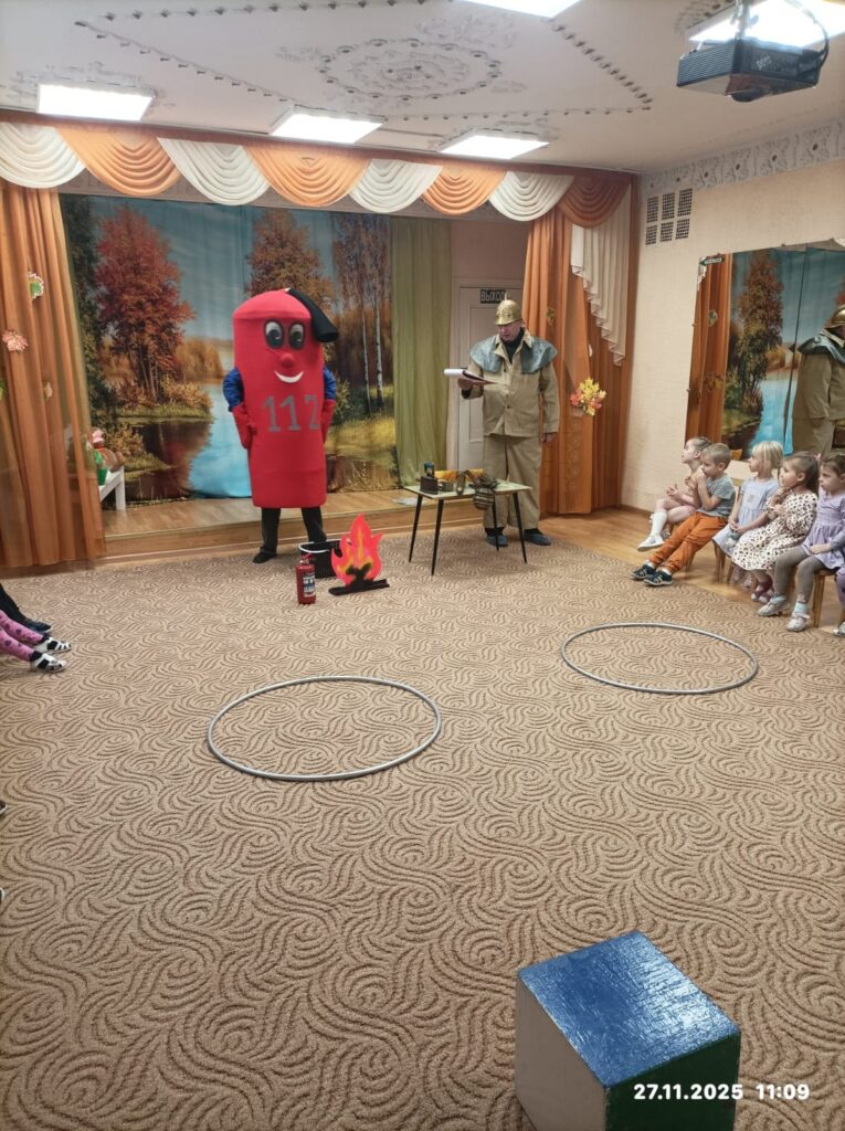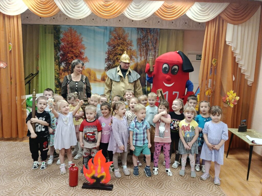 В детском саду №27 Великого Новгорода наш любимый Огнетушитель и Бравый пожарный провели с детьми увлекательное занятие по пожарной безопасности.