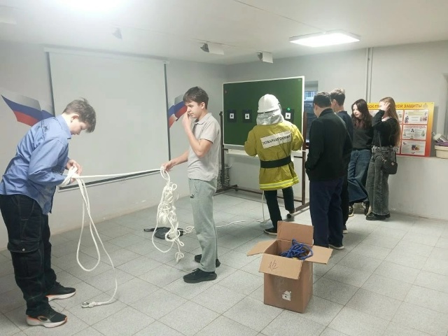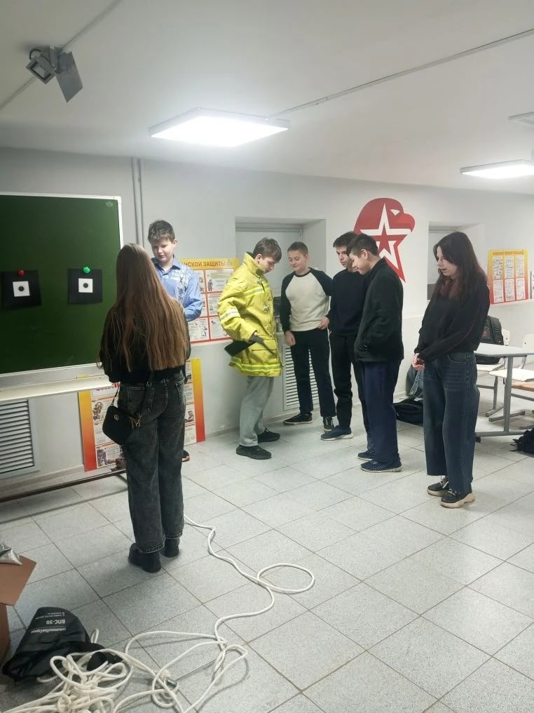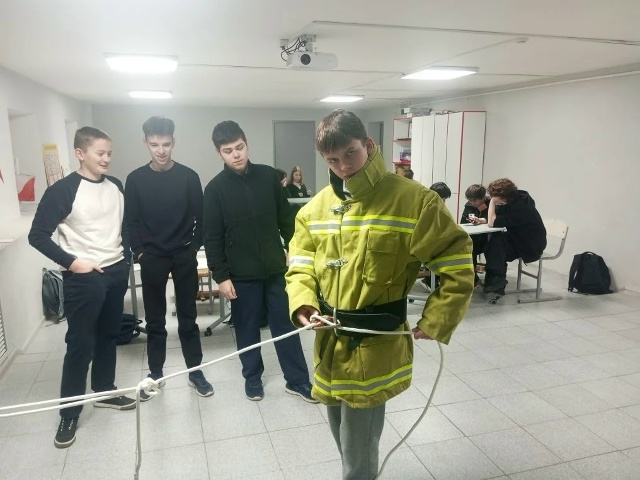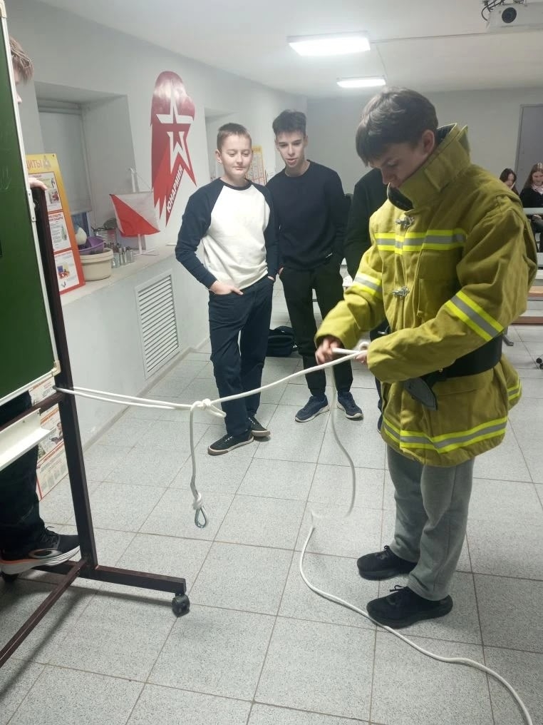 29 января члены дружины юных пожарных отрабатывали навыки вязания пожарных узлов и надевания боевой одежды пожарного (БОП).