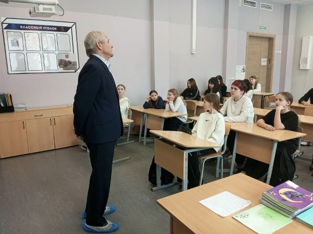 В преддверии дня защитника Отечества члены дружины юных пожарных средней школы №16 Великого Новгорода встретились с ветераном пожарной охраны Никишовым Юрием Васильевичем.